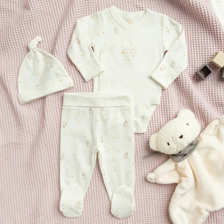 Cool Club, Komplet niemowlęcy, Body z długim rękawem, Półśpiochy, Czapka, biały