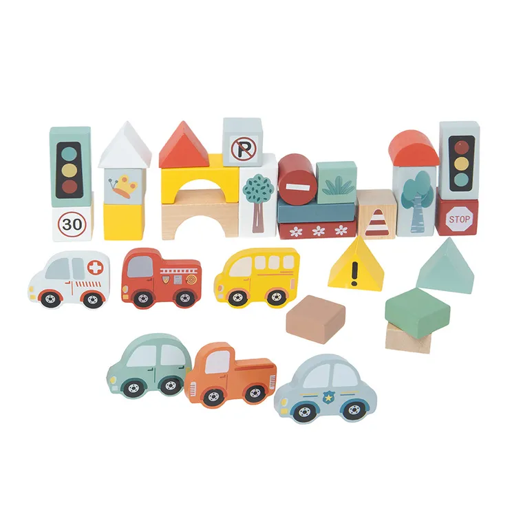 Smiki, Miasto, drewniane klocki, 50 elementów