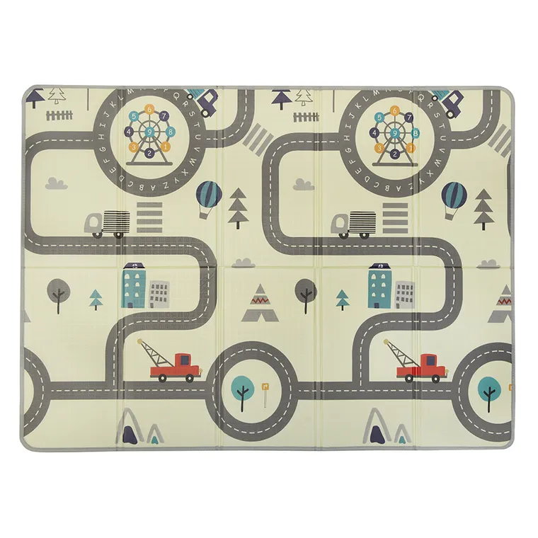 - Miękki, dobrze izolujący przed chłodem materiał z nadrukiem, gwarantuje komfortową i bezpieczną zabawę dla dzieci.